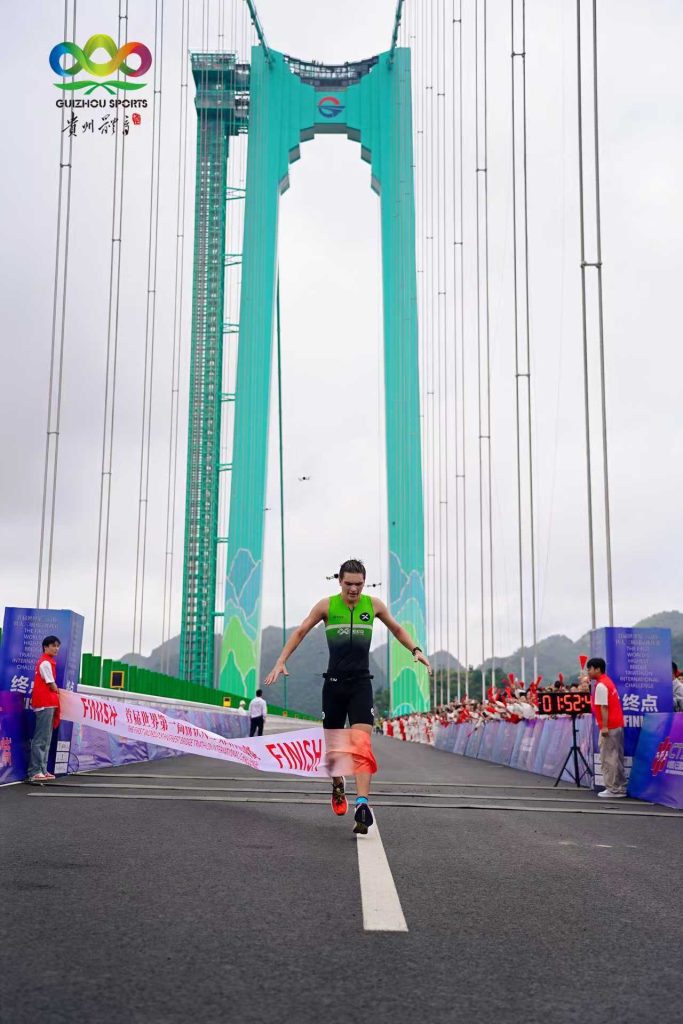 Josh claimed victory at the inaugural World’s Tallest Bridge Triathlon on 21 September 2025, a race unlike any other. Held on the newly opened Huajiang Grand Canyon Bridge towering 625m above the Beipan River in Guizhou Province, China, the event was a spectacle from start to finish. “It was honestly crazy,” said Josh. “You start with flares going off over the lake, then climb 800m over 26km – it was steep!”