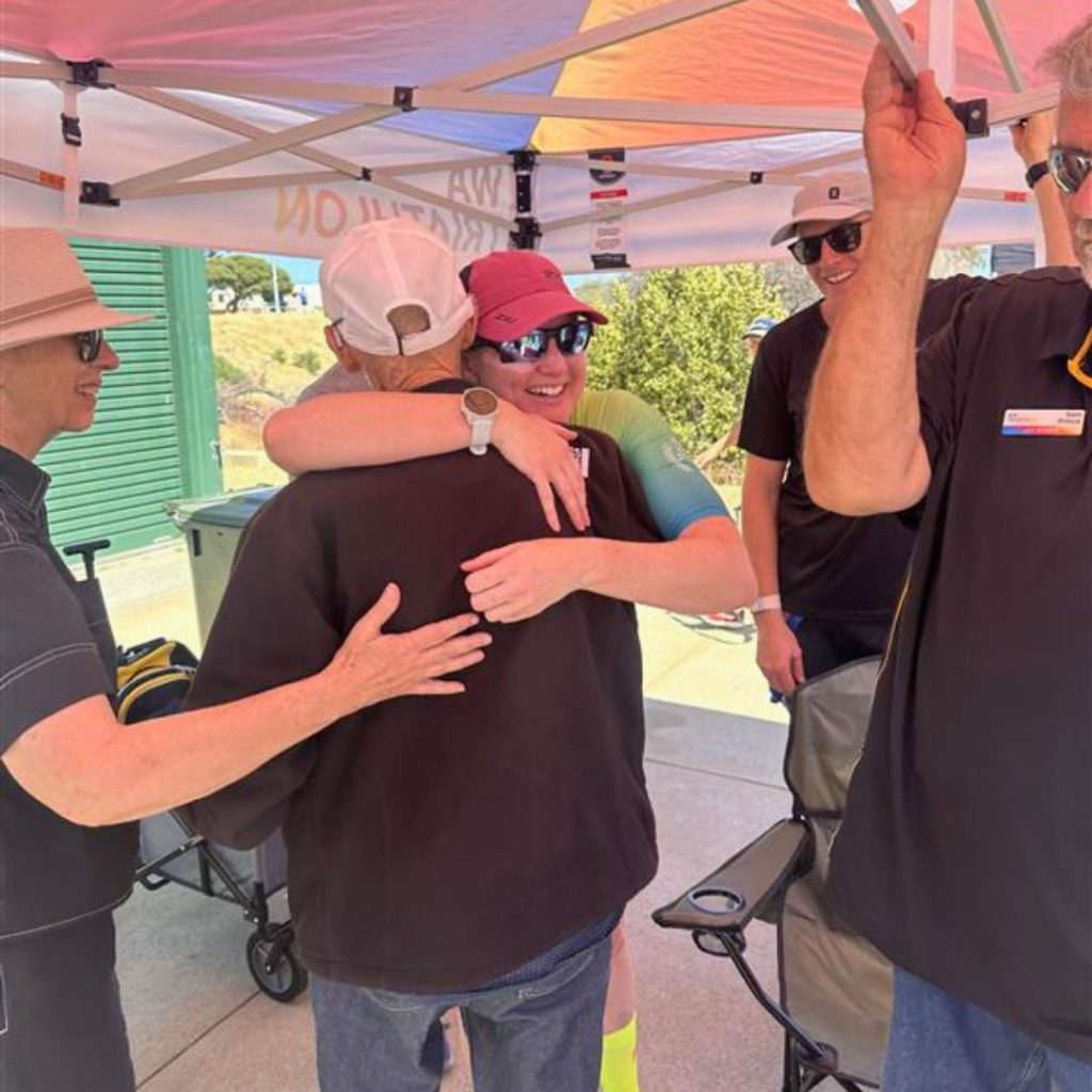Our sincere thanks go to Mandurah Triathlon Club for giving us the opportunity to share this special moment, to Life Member Sam Prince who rode to Halls Head from Busselton for the occasion, and to Dave Scott for his strength, dedication, generosity, and for the selfless way he continues supporting the community he loves.